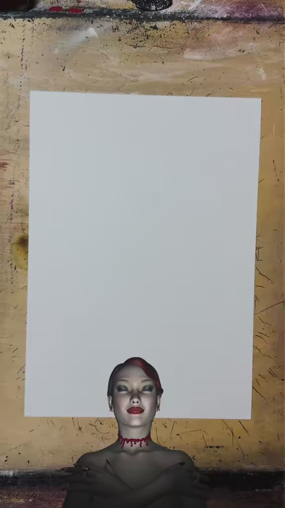 Vampire Woman design, around 30 hours of work. Original drawing was produced with Wax Based Coloured Pencil, Gouache and Carbon on Heavyweight Smooth 230gsm Paper.