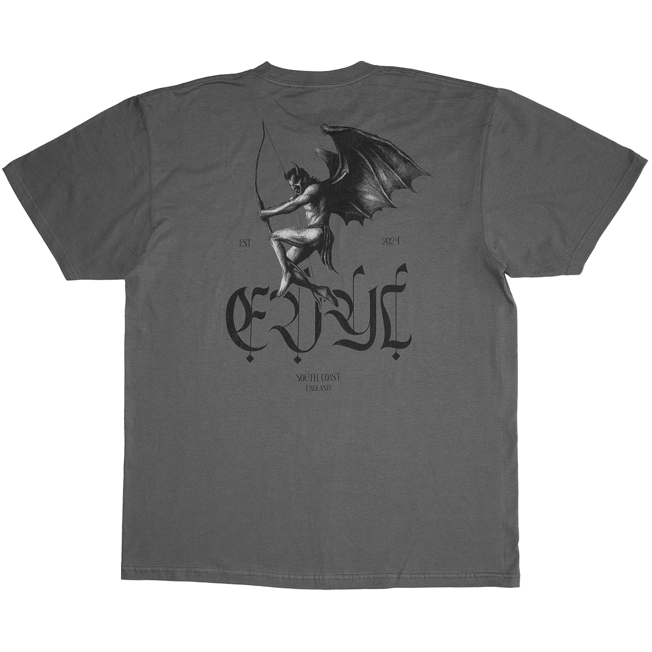 Fallen Cherub design, full detail as a 3 colour back print. Original drawing was produced with Wax Based Coloured Pencil, Gouache and Carbon on Heavyweight Smooth 230gsm Paper.